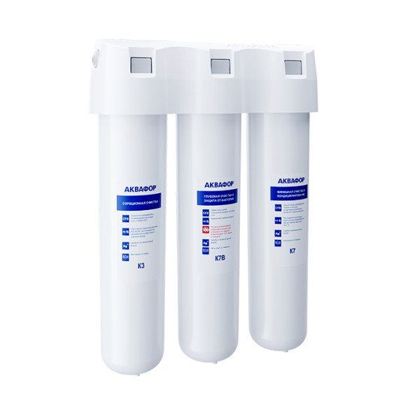 Картриджи последовательно очищают воду и от видимых примесей, и от растворенных. Первый картридж задерживает более крупные частицы, а каждый последующий - более мелкие. Чем больше ступеней - тем лучше фильтр очистит воду: поймает более мелкие видимые частицы ржавчины, песка и ила, успеет захватить из воды максимум растворенных примесей - хлора, нитратов, тяжелых металлов и других.
