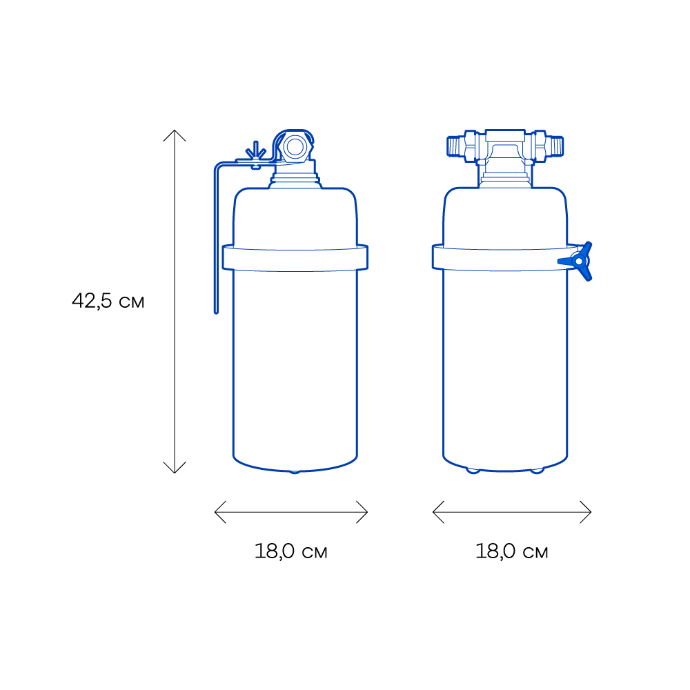 Высота, смОбратите внимание на габариты фильтра и измерьте, сколько свободного пространства в предполагаемом месте установки.42,5Ширина, смОбратите внимание на габариты фильтра, и измерьте, сколько свободного пространства в предполагаемом месте установки.18,0Глубина, смОбратите внимание на габариты фильтра, и измерьте, сколько свободного пространства в предполагаемом месте установки.18,0Материал корпусаПищевой пластик: Допущен к контакту с пищевыми продуктами. Нержавеющая сталь: Долговечный и безопасный корпус из нержавеющей пищевой стали.нержавеющая стальДля холодной водыда